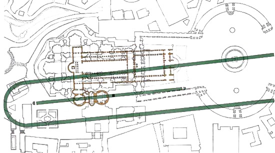 - immagini: Circo di Caligola e Nerone con necropoli romana / Circo di Nerone - ricostruzione / trasformazione della collina: circo-necropoli-basiliche / circo con basiliche sovrapposte - pianta
